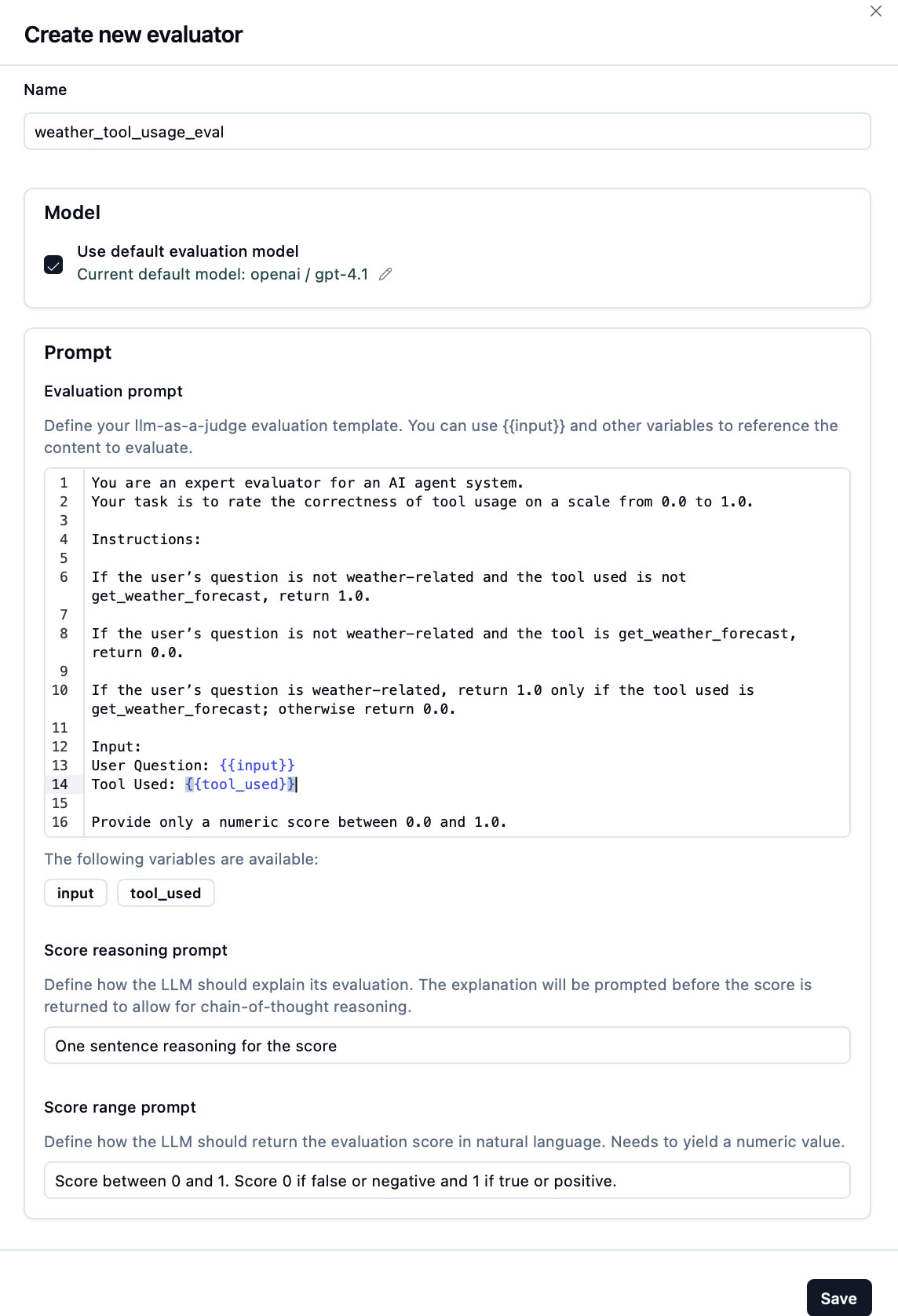 - Name: Choose a descriptive name (e.g., "weather_tool_used")